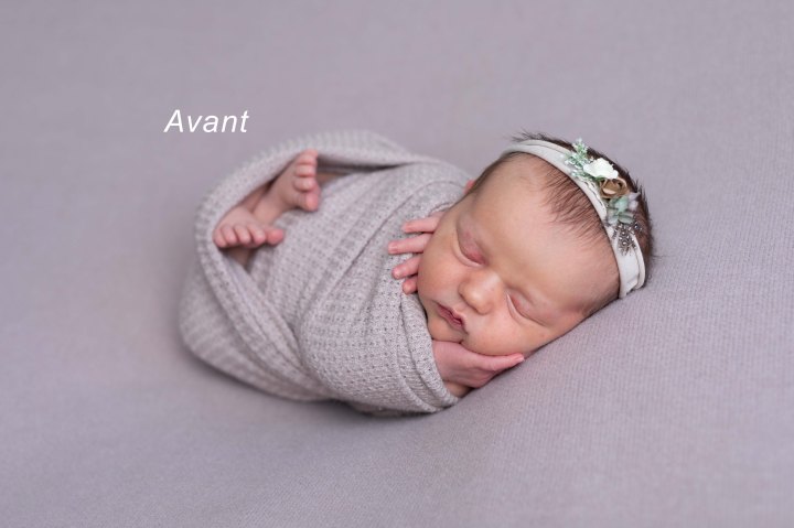 Je suis une perfectionniste. Pendant la séance, je passe beaucoup de temps (mes clients pourront le confirmer 😅) à positionner bébé et à soigner tous les petits détails, comme la position des mains et des doigts, des pieds, ainsi que des accessoires.