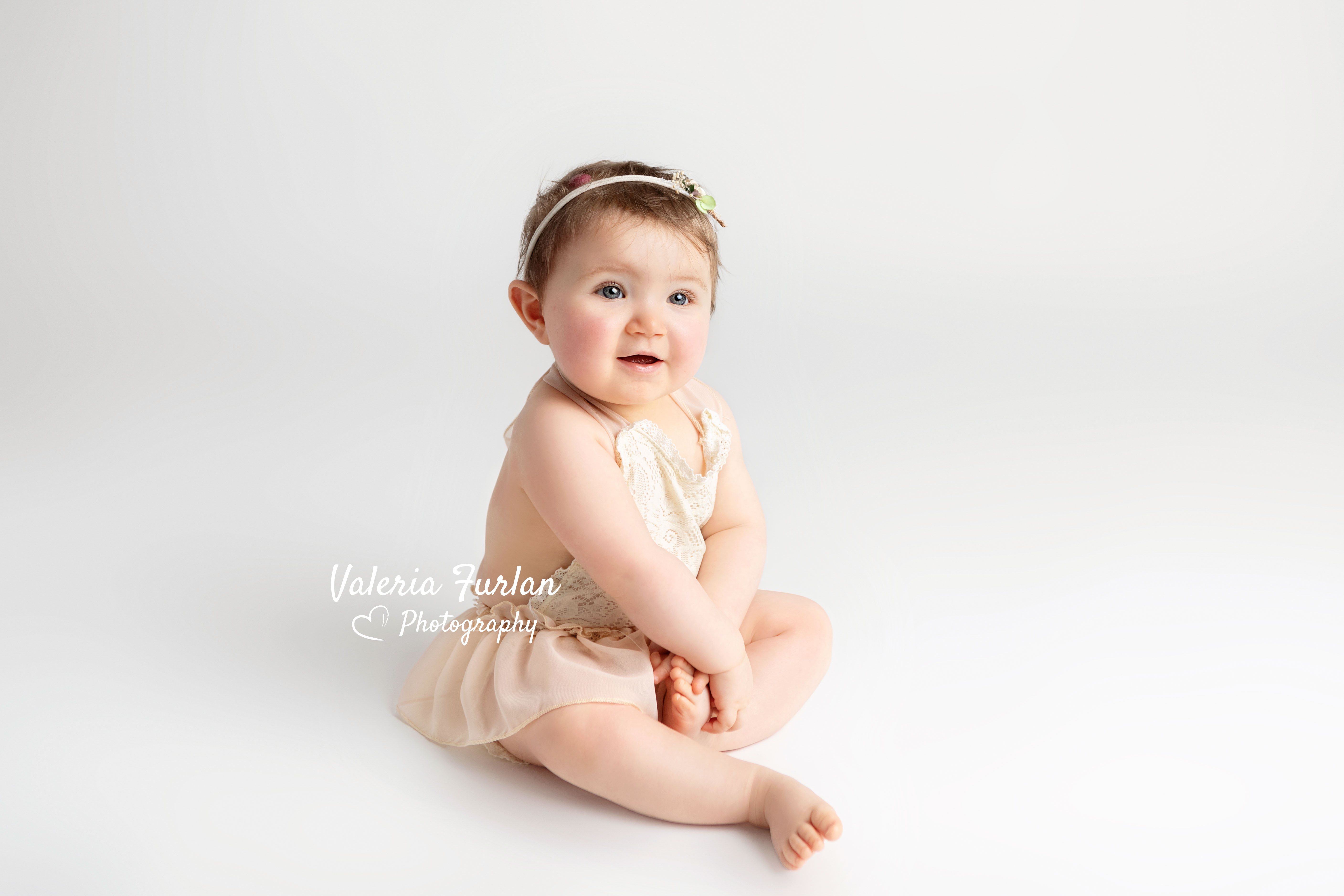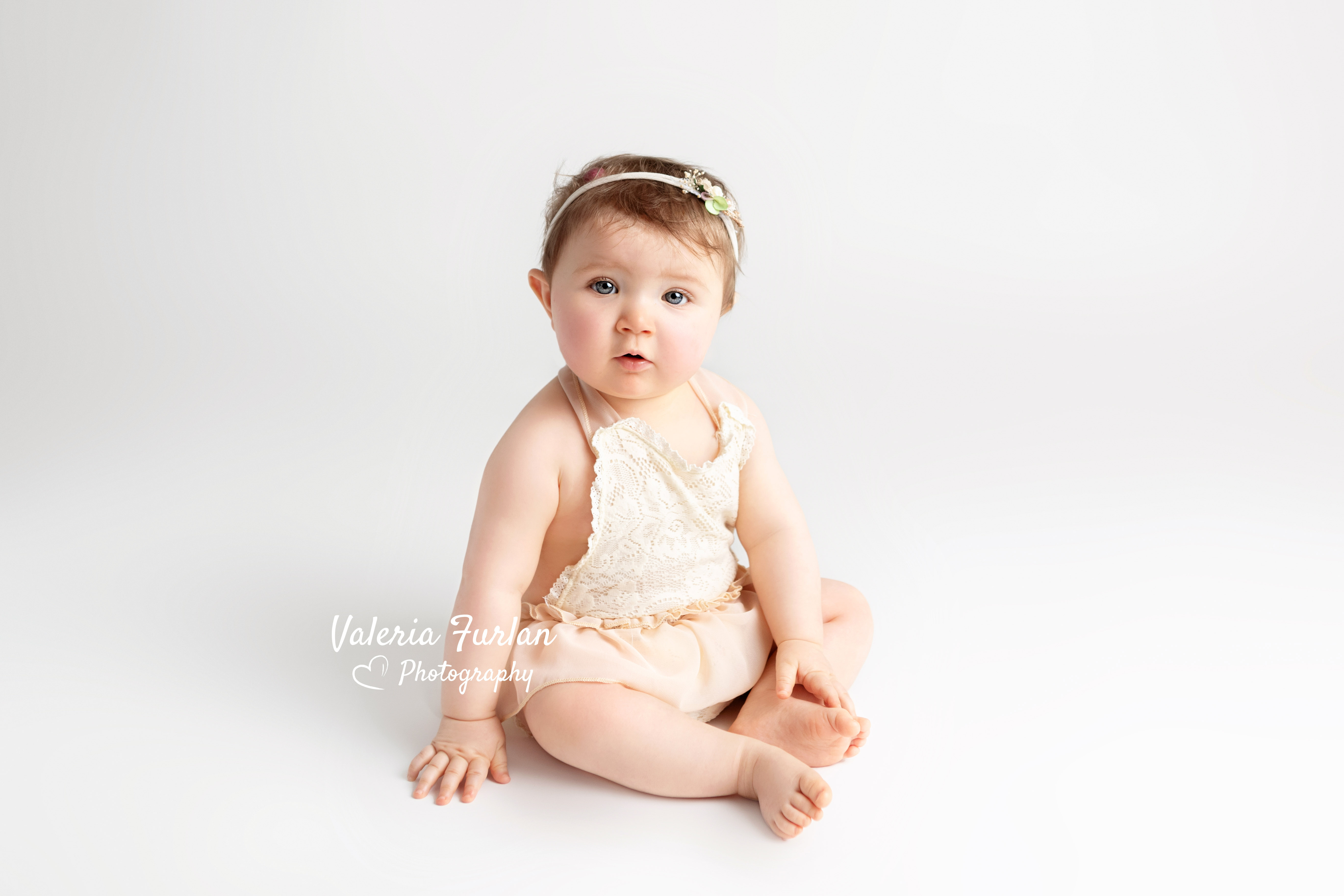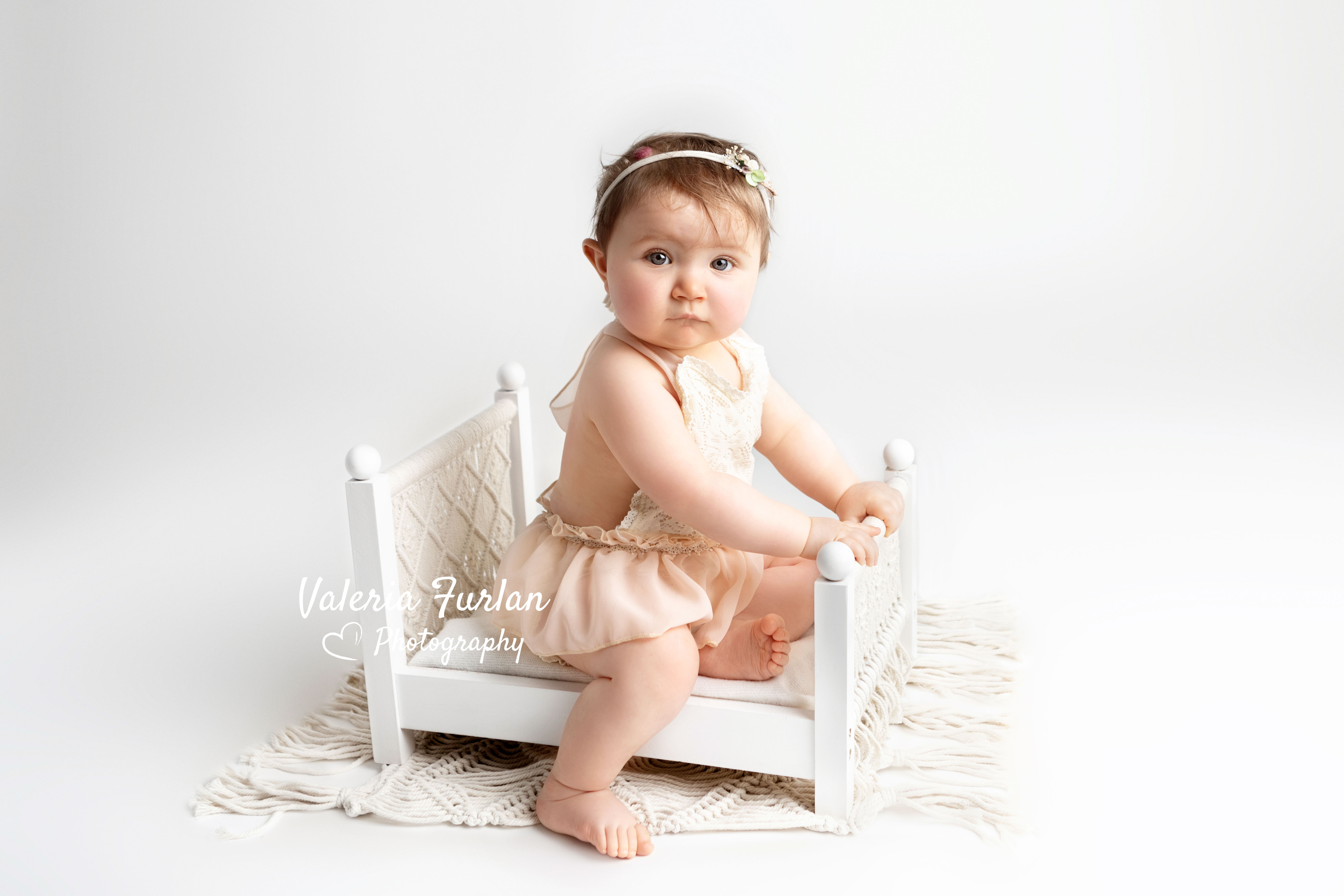 J’adore ce look « total white » que Samantha a choisi pour la séance Bébé tient assis de sa petite Flore !