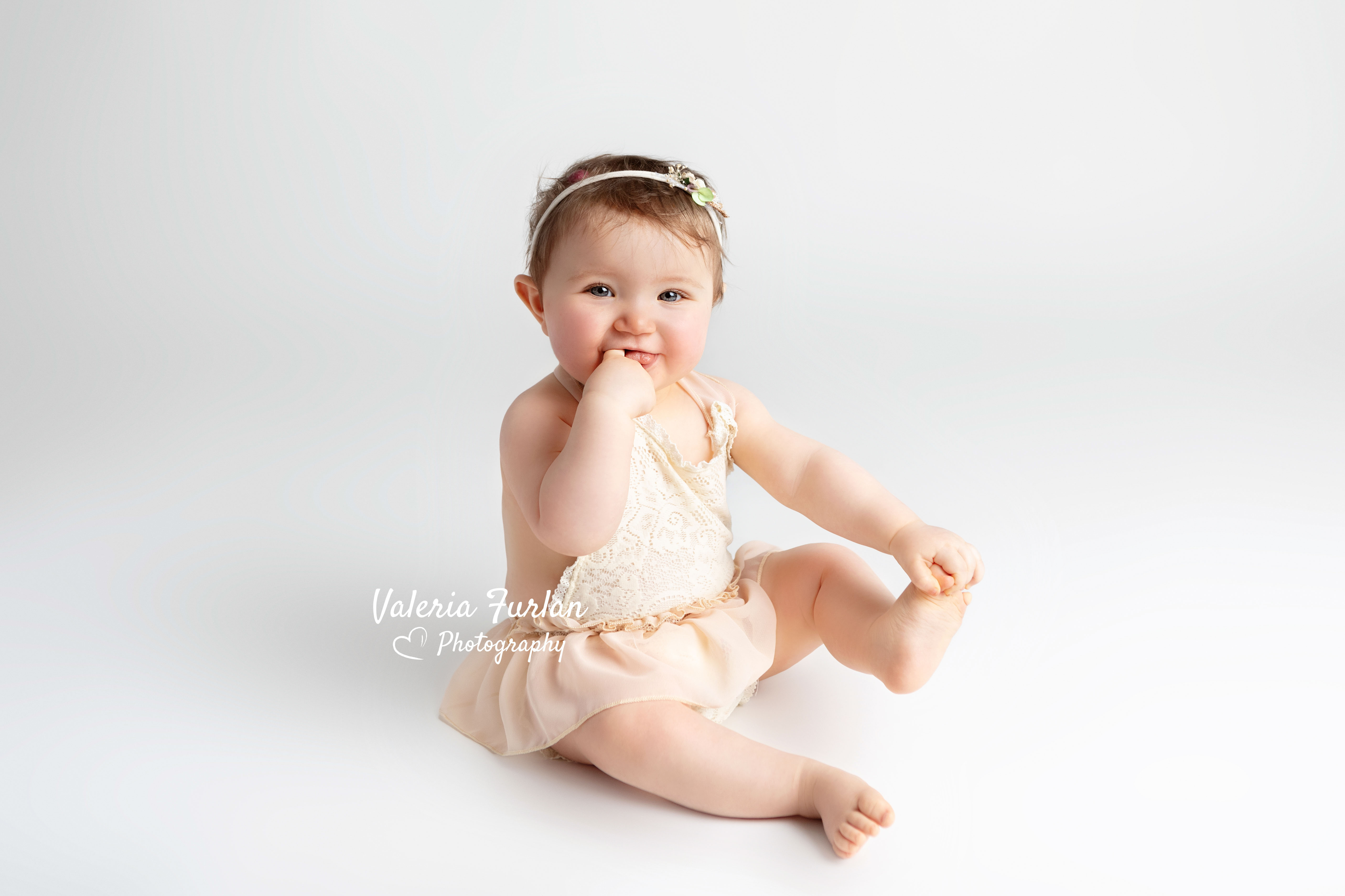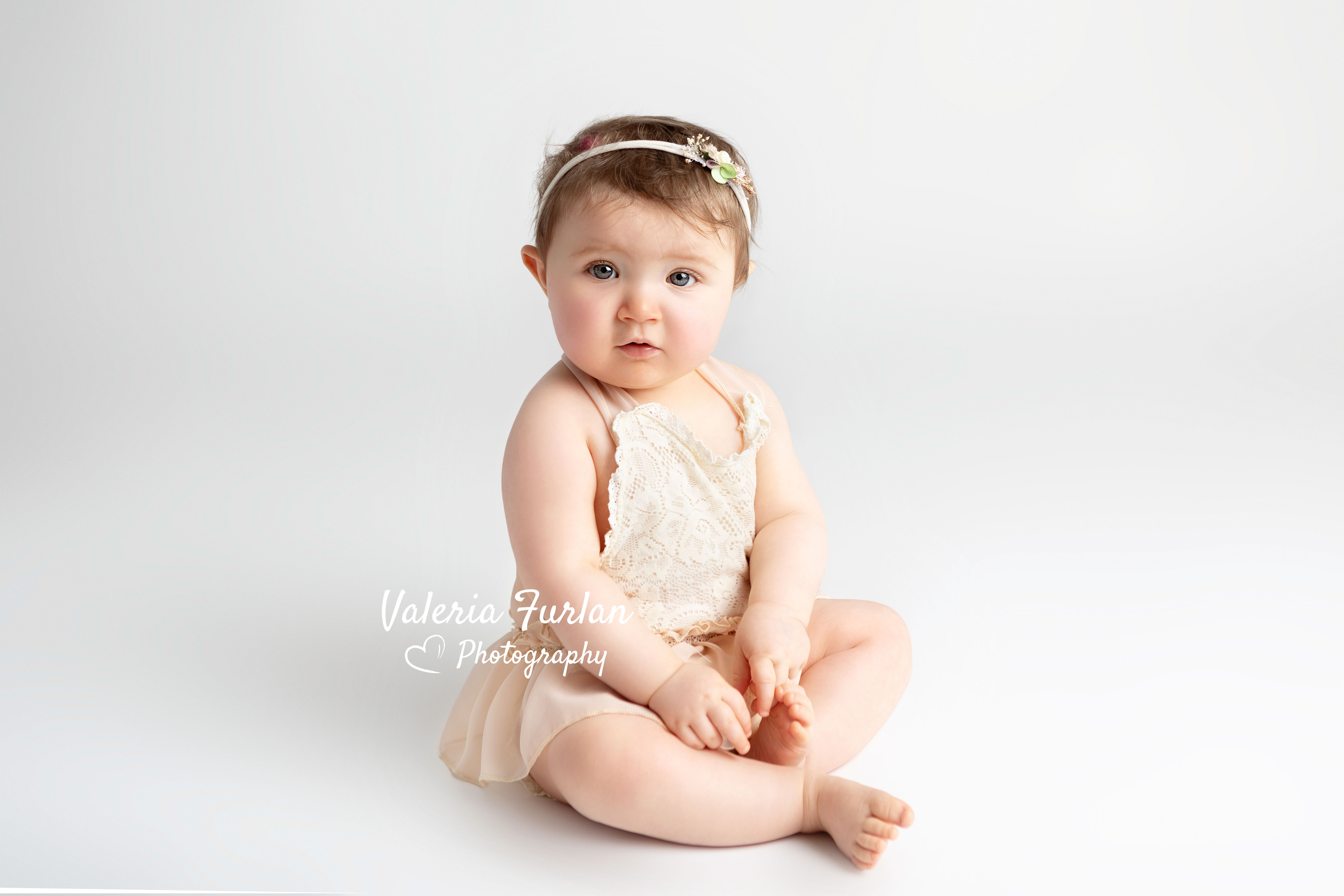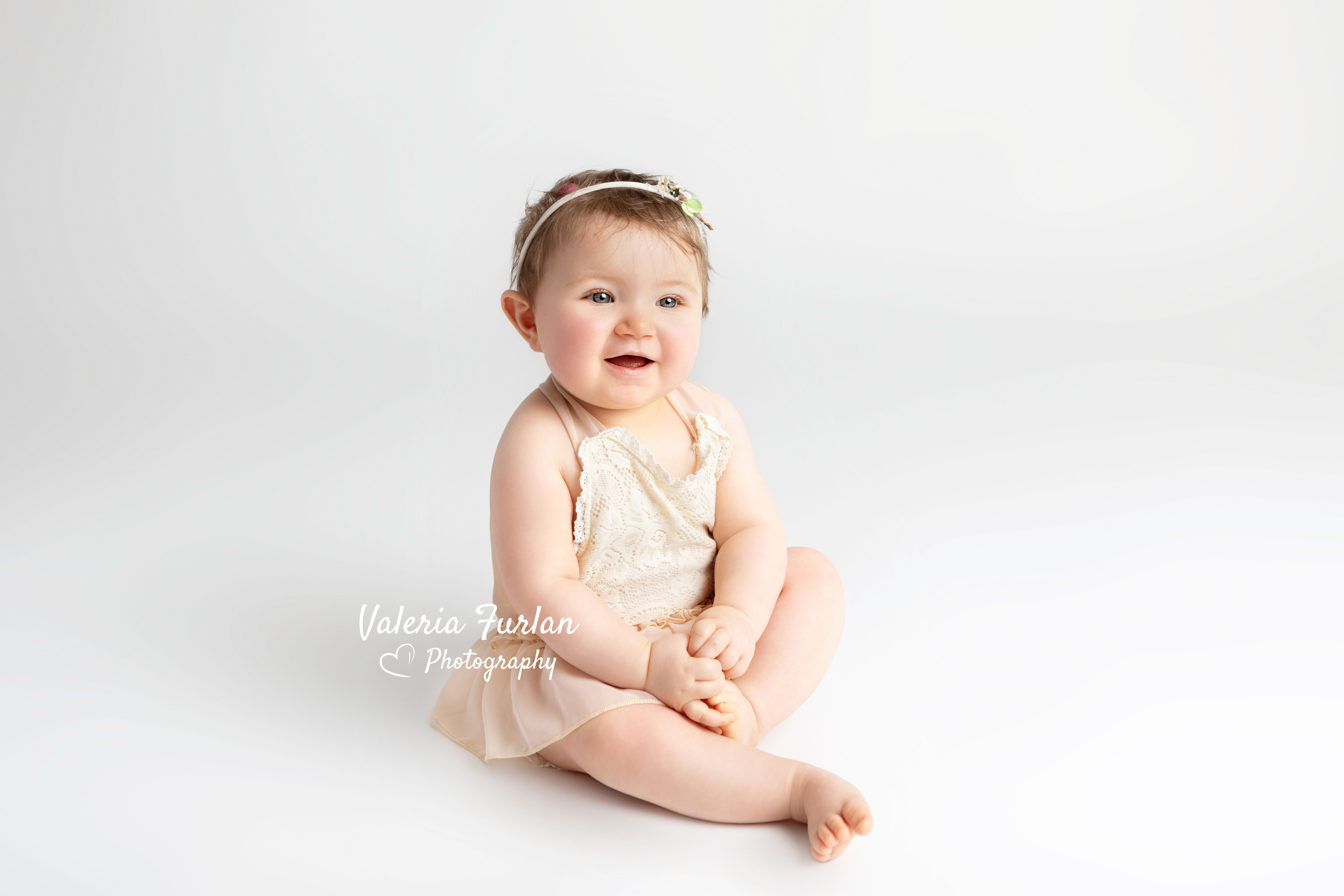 J’adore ce look « total white » que Samantha a choisi pour la séance Bébé tient assis de sa petite Flore !