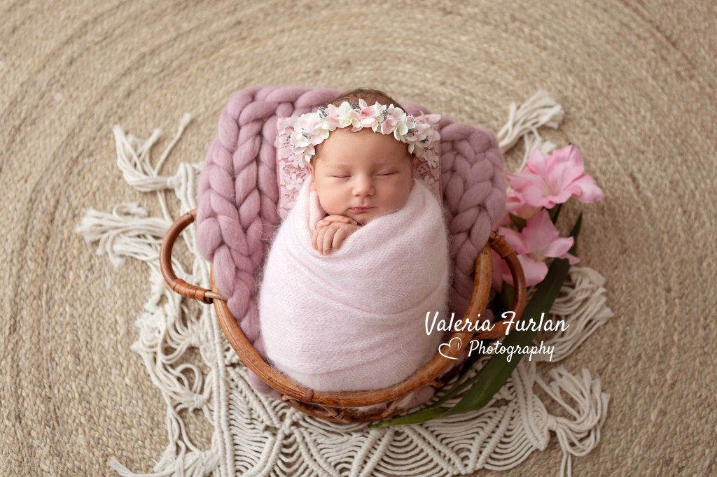 La technique du Wrapping est l’une de plus utilisées dans la photographie Newborn. Elle consiste à emmailloter le bébé afin de le rassurer, l’apaiser et le faire sentir en sécurité, lui rappelant l’environnement où il a vécu pendant 9 mois avant sa venue au monde: le ventre chaud, doux et rassurant de sa maman.