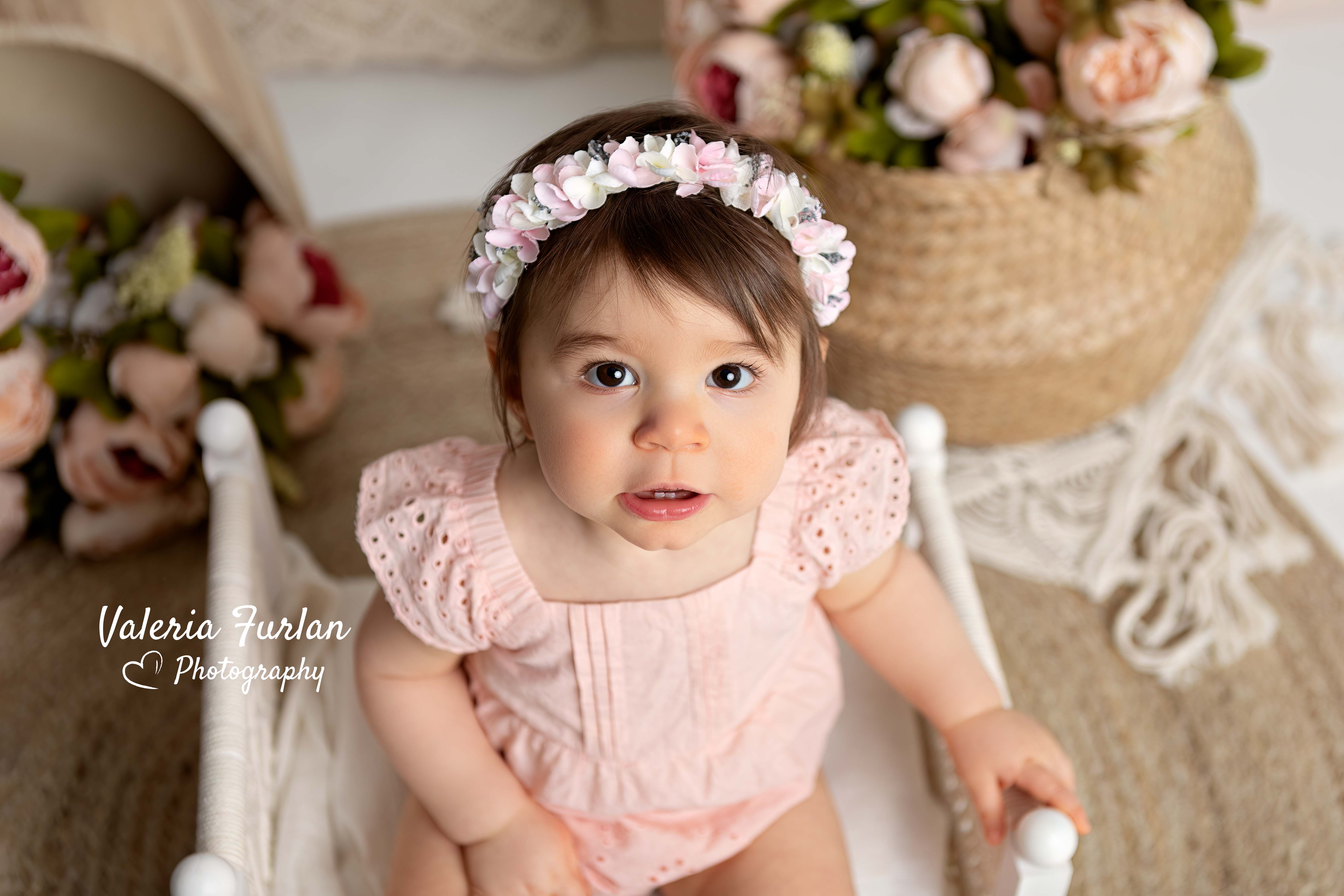 Votre bébé peut déjà s’asseoir sans soutien mais il ne se déplace pas encore : c’est l’occasion parfaite pour avoir des beaux portraits de votre enfant !